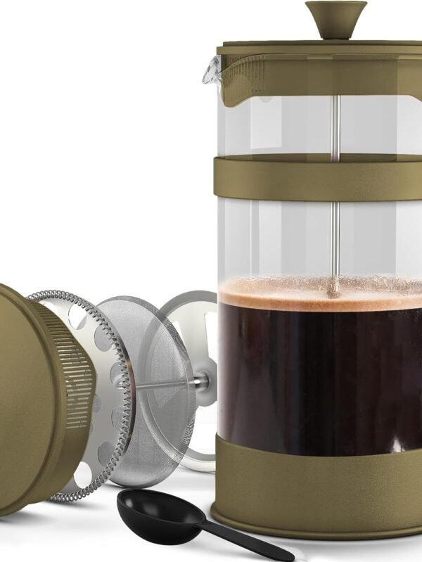34 Ounce 1 Liter French Press Coffee Maker, Tea Maker, Travel Coffee Presses, Heat Resistant Thickened Borosilicate Coffee Pot for Camping Travel Gifts, Gold Pack of 1
