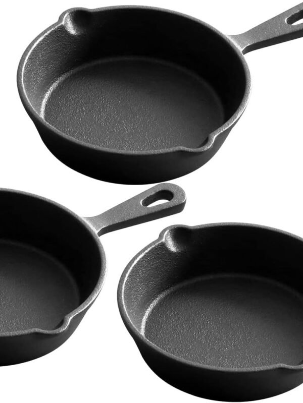 Pre-Seasoned 4.7-Inch Mini Cast Iron Skillet 3 Pack, Frying Pan, Indoor Outdoor Use