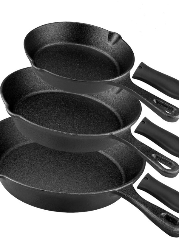 Pre-Seasoned Cast Iron Skillet 3 piece Cast Iron Frying Pan set with Heat-Resistant Handles - 6 inch, 8 inch and 10 inch Cast Iron Set, For Frying, Saute, Pizza, Oven Safe (Black)