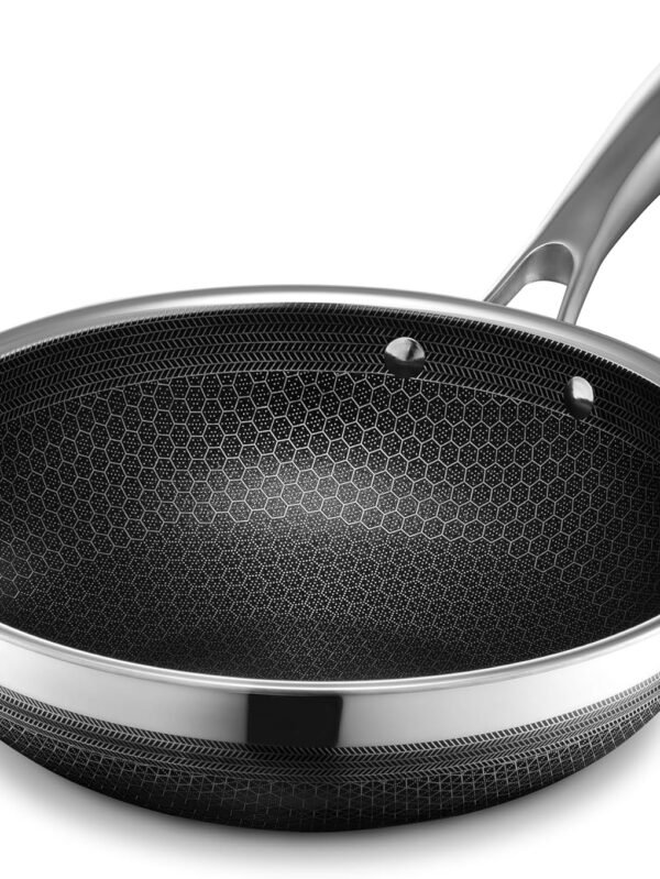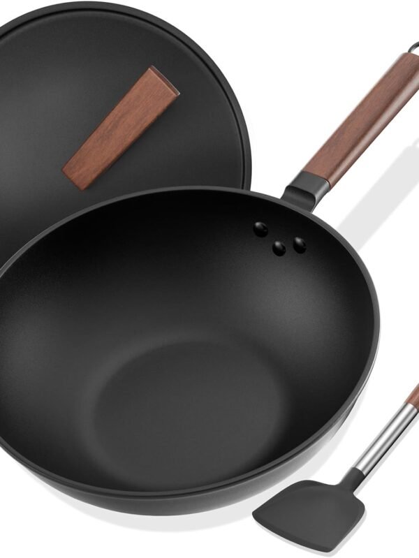 Nonstick Stir-Fry Wok Pan 11-Inch, Hard Anodized Deep Frying Pan with Glass Lid, Flat Bottom, Black