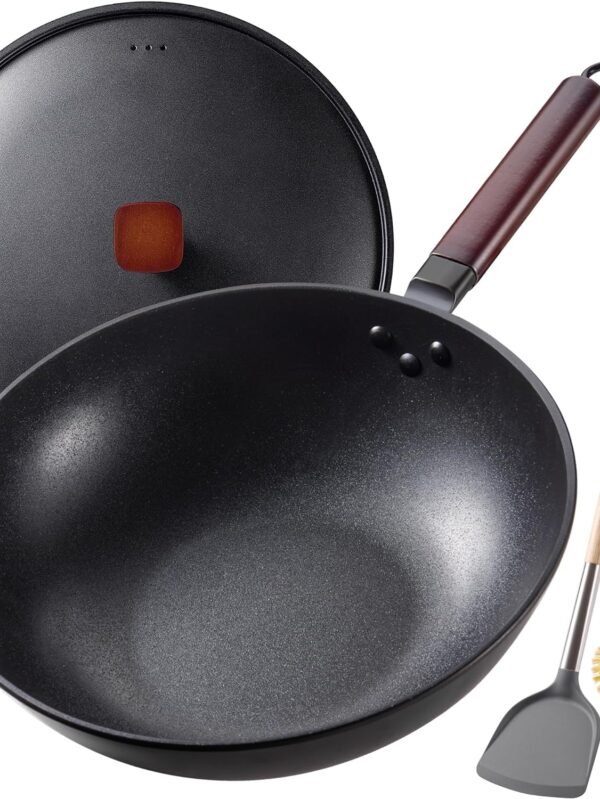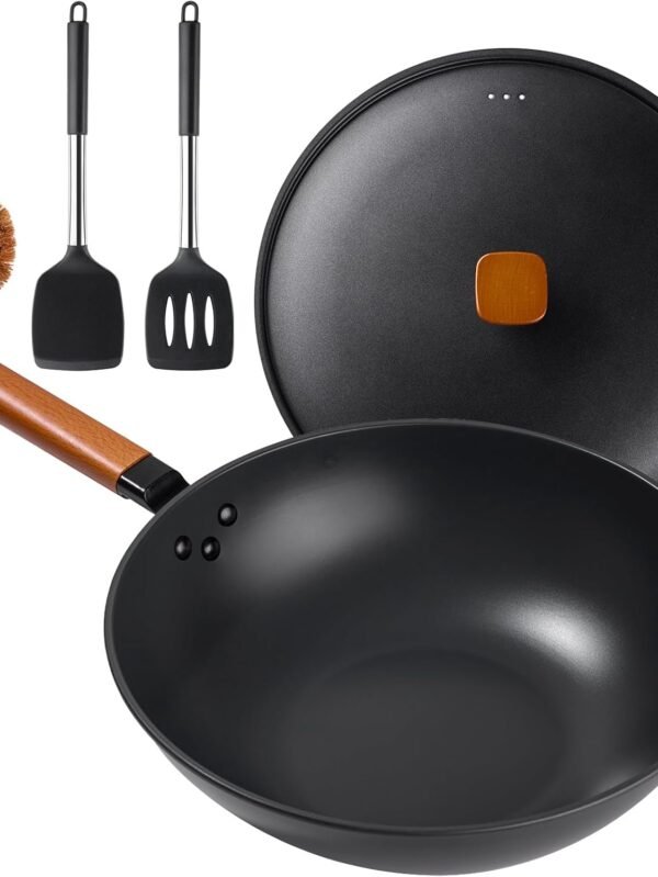Carbon Steel Wok Pan, 9.5" Stir-Fry Pan, 1.65lb Lightweight Flat Bottom Mini Wok for 1-2 Servings