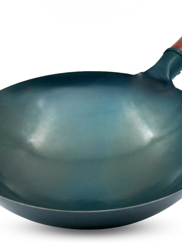 Carbon Steel Wok Traditional Hand Hammered Wok,14 Inch,Round Bottom(Roasted Blue)