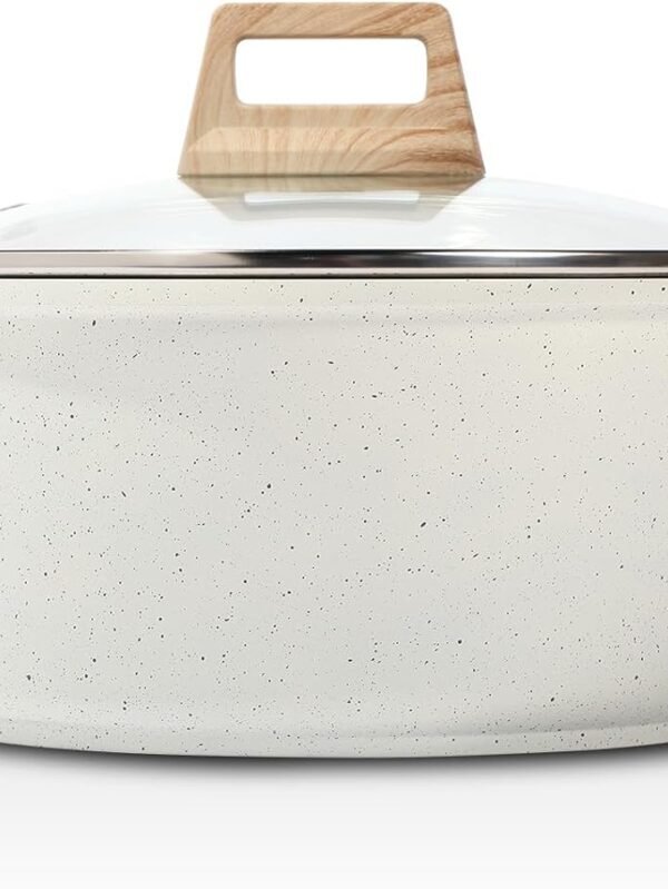 Nonstick Stock Pot with Lid, 5 Quart Granite Casserole Large Soup Pot Pasta Cooking Pot, Induction Compatible, & Free, White
