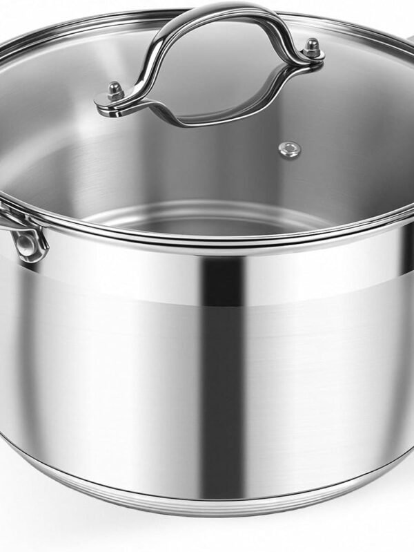Stainless Steel Stock Pot - 8 Quart Heavy Duty Induction Cooking Pot with Visible Lid for Pasta, Soup, Spaghetti, Nonstick Thick Bottom Big Stockpot, Deep Cookware for Canning, Boiling, Simmer