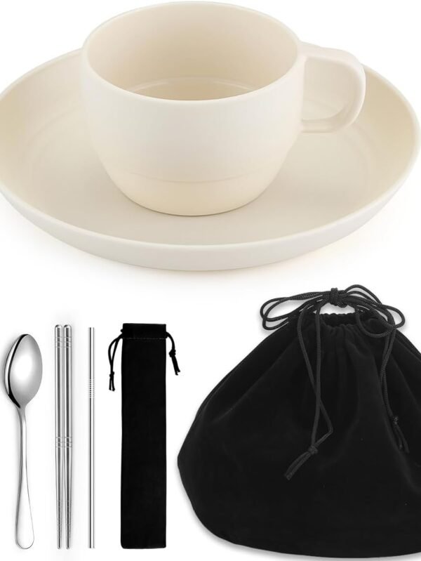 Camping Essentials Set, Camping Plates and Bowls Set, Coffee Mug, Travel Cutlery Set Include Spoon, Fork, Knife for Work, Outdoor,Picnic, Camp (White)