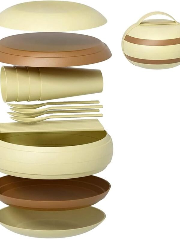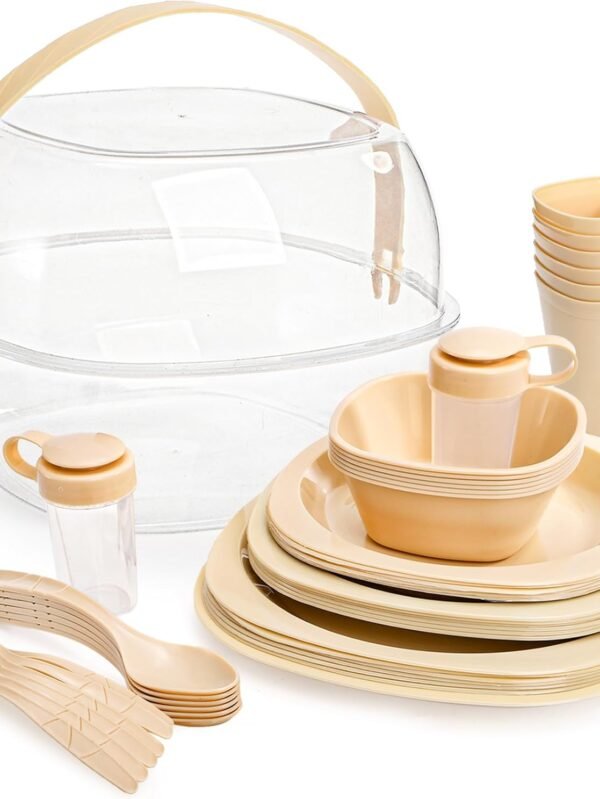 Portable Camping Dinnerware Set - Reusable Unbreakable Tableware, 15 Plates & 6 Cups BPA-Free Dishwasher-Safe for Outdoor Picnic RV Travel