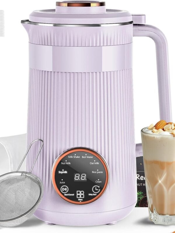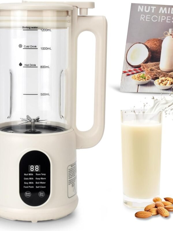 Nut Milk Maker, 8 in 1 Homemade Automatic Plant-Based Milk, Soy Milk, Almond Milk, Oat Milk, Coconut Milk & More, Multifunctional/12 Hours Timer/Auto-Clean/Room Temp/Keep Warm/Boil/Room Temp/Low-Noise