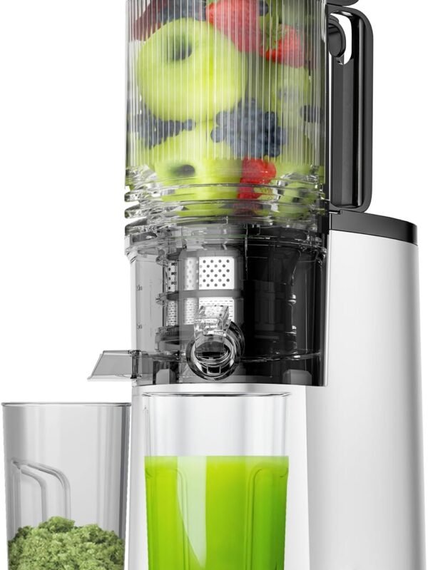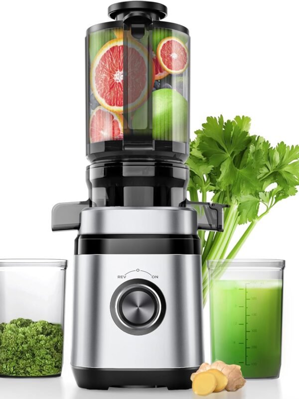 Cold Press Juicer, 5.8" Wide Feed Chute Juice Extractor Machine with 400W, High Juice Yield, Slow Masticating Juicer for Whole Vegetables & Fruits, Premium Silver