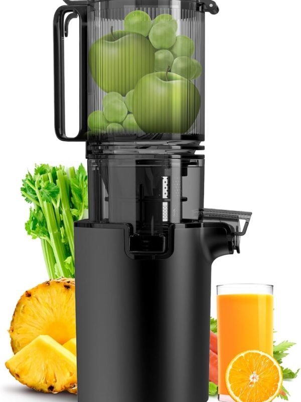 Cold Press Juicer, 5.4" Wide Feed Chute Juice Extractor Machine with 400W, High Juice Yield, Slow Masticating Juicer for Whole Vegetables & Fruits, Black