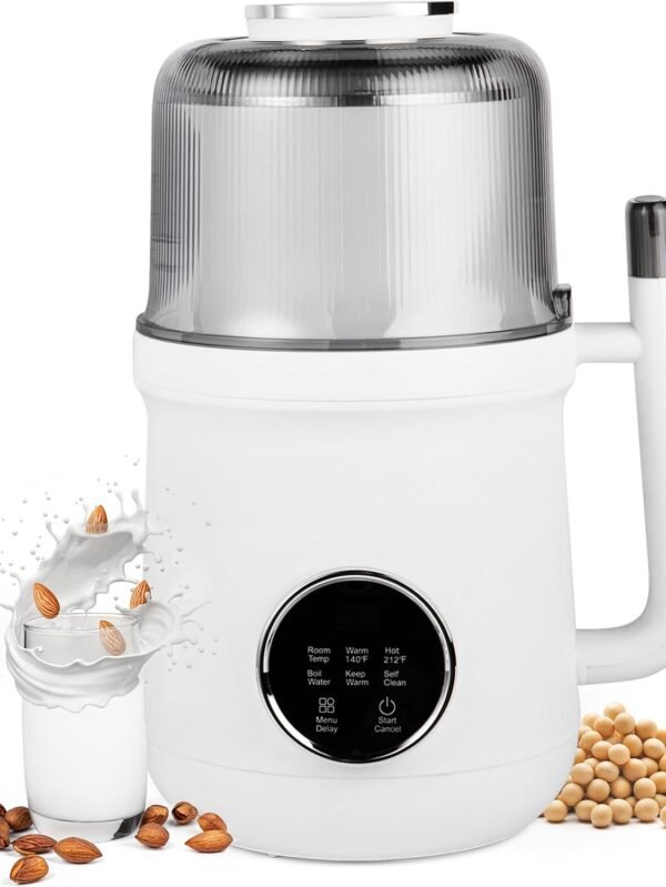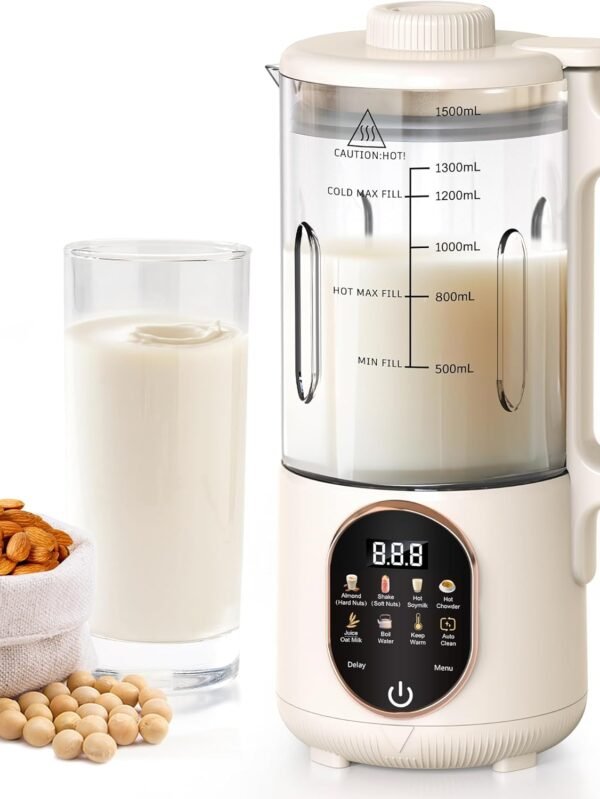8-in-1 Automatic Soy Nut Milk Maker,40oz Soy Milk Maker for Homemade Almond,Oat,Soy Milk,Rice Paste,Complementary Food,Juice,Milk Maker Machine with Delay Start/Keep Warm/Self Clean/Boil Water (White)