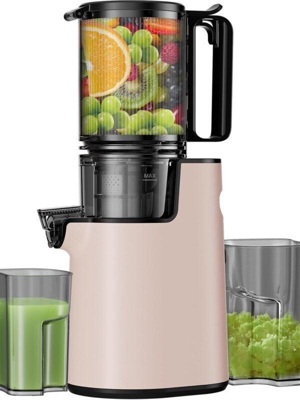 Cold Press Juicer, Masticating Juicer with 5.4" Wide Feed Chute, 350w Slow Juicer Machines Fit Whole Vegetables and Fruits with High Juice Yield, Easy to Clean (Pink)