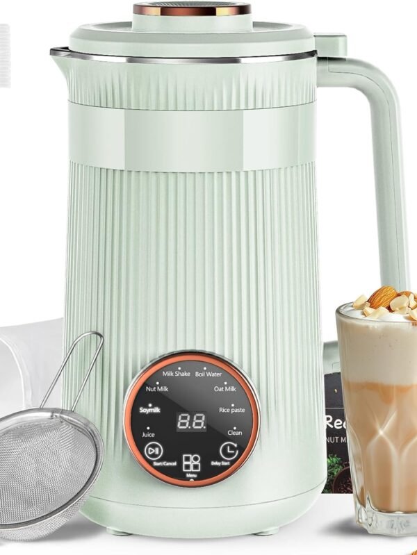 Nut Milk Maker Machine – 32oz Plant-Based Homemade Milk Maker – Multi-Functional Automatic Soy Milk Maker for Almond, Cashew, Soy, Oat, & Juice – Boil Water/Delay Start/Self-Clean
