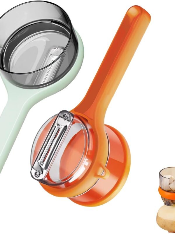 2 Pack Vegetable Peeler with Container, Double-Sided Stainless Steel Blade Peeling Knife with Storage Box, Veggie Peeler with Catcher Bucket for Home Kitchen Fruit Supplies (Orange & Green)