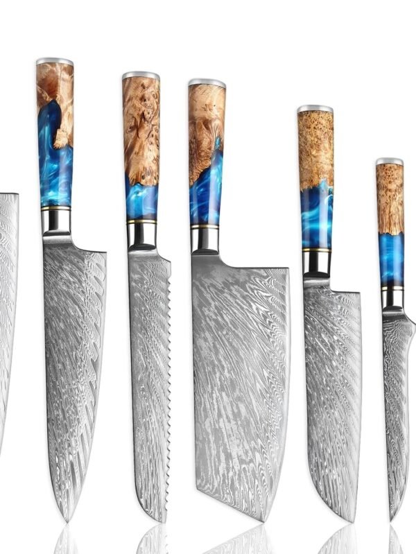 8-Piece ese Knife Set with Blue Resin Handle and Laser Pattern - Collection - Chef's Knife, Santoku Knife, Bread Knife, Paring Knife, & More, Extremely Sharp Blades