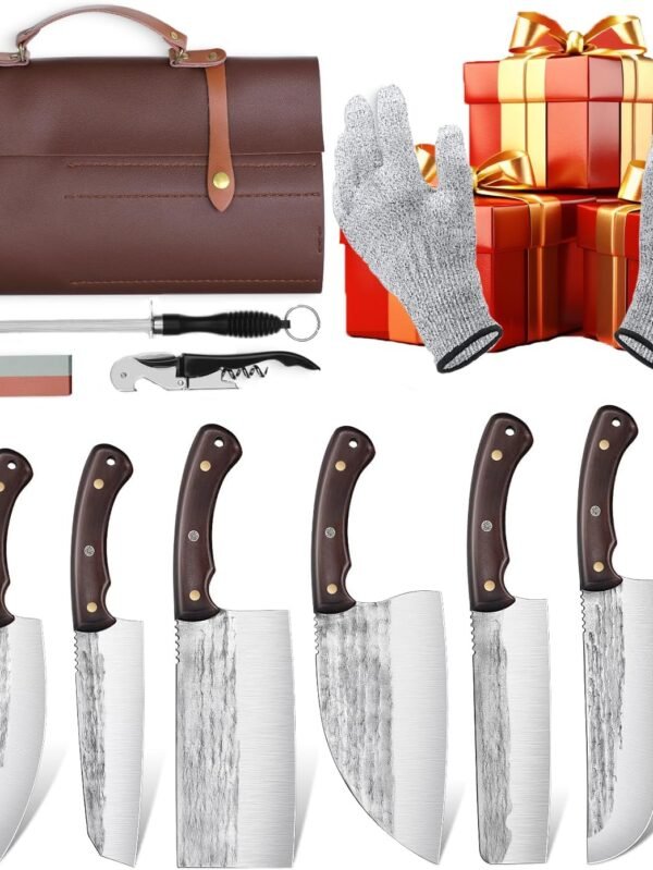 16pcs Butcher Knife Set Hand Forged chef knife Boning Knife With Sheath High Carbon Steel Carving Knife Fish Knife Chef Knife For Kitchen, Camping,