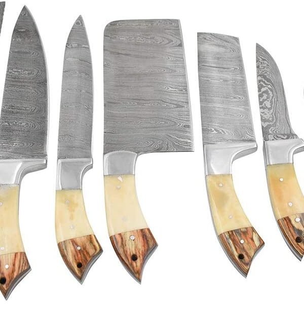 Handmade 8 piece Kitchen Chef Knife Gaming Set Full Tang Blades Rose Wood Handle Sharp