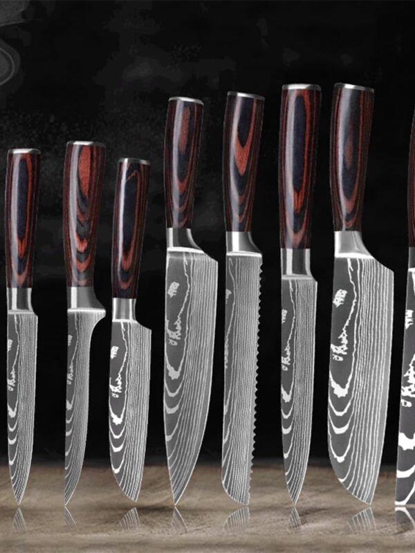 8-piece Premium ese Kitchen Knife Set with Laser Pattern - Imperial Collection - Ultra Sharp for Very Fast Cutting