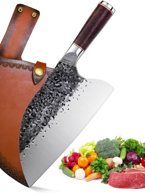 Forging Serbian Chef Knife Kitchen Chef Knives Full Tang High Carbon Clad Steel Butcher Cleaver with Leather Sheath Thanksgiving Christmas Gifts
