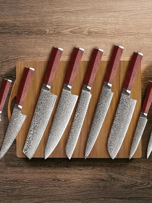 Kitchen Utensils Set Steel Knife 9 Piece Kitchen Knife Set, Steak Knife Chef Knife Kitchen Accessories, Core 67 Layers Blade Solid Rosewood, Durable, Easy To Clean