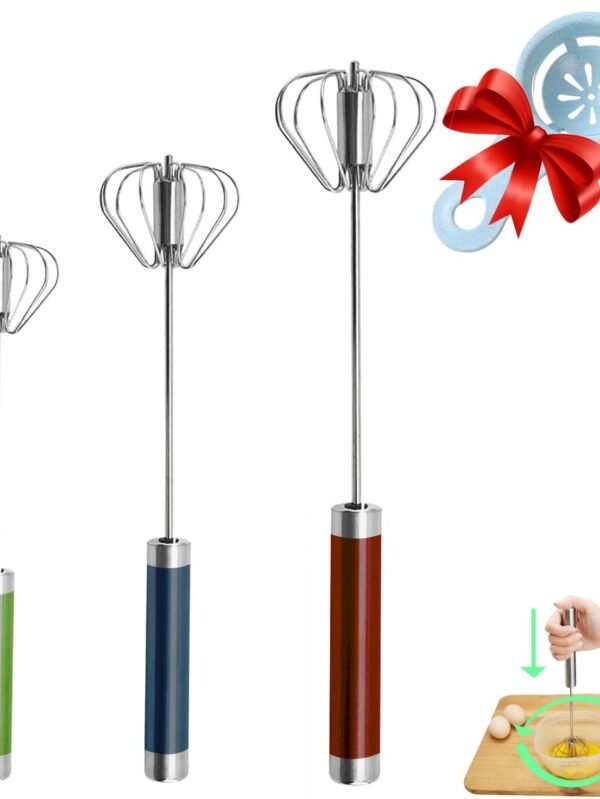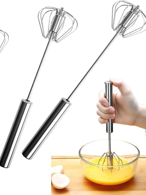 3 Pack Stainless Steel Egg Whisk, Hand Push Rotary Whisk Blender, Versatile Easy Whisk, Hand Push Mixer Stirrer for Beating Eggs, Frothing Milk, Blending, Mixing, Whipping Smoothies & Shakes