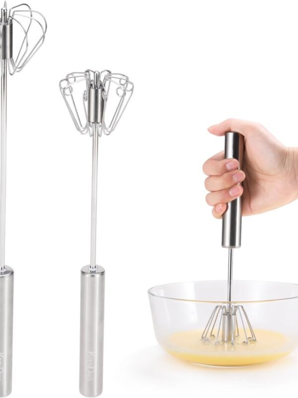 Stainless Steel Whisk & Beater Set - Manual & Automatic Handheld Easy Semi-Auto Mixer for Cooking - 12 & 14inch Frother Spinner, Mixer & Stirrer for Eggs, Hand, and Milk