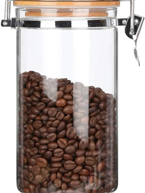 Clear Borosilicate Glass Food Storage Jar Canister Container with Airtight Locking Clamp Bamboo Lid,Coffee Bean,Loose Tea,Nut Container,Sealed Jar Hinged Lid for 16oz Coffee Bean,40 Fluid-oz