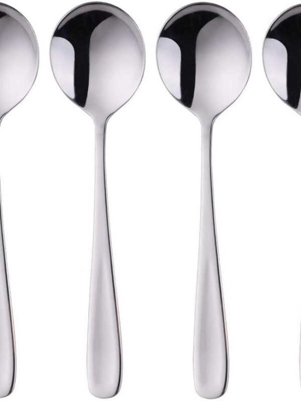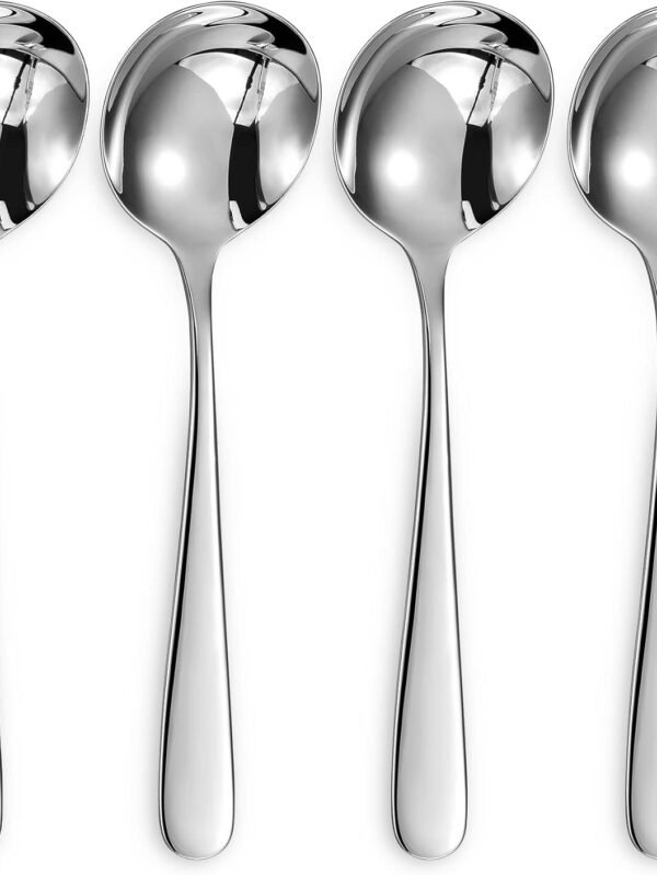 Premium 7" Soup Spoons, 18/10 Stainless Steel, Dishwasher Safe (4)