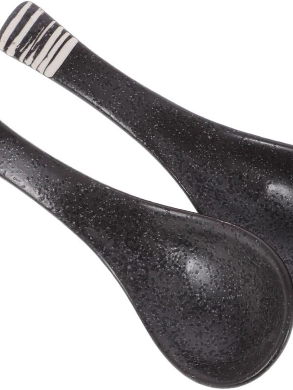 12-piece Asian Soup Spoons, Rice Spoons, Chinese Won Ton Soup Spoon - Notch and Hook Style, Black