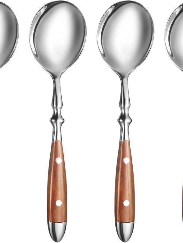 Soup Spoons,4Pcs Soup Spoons Set,Stainless Steel 18/8 Spoons with Comfortable Bakelite Handle,Heavy-Weight Metal Round Spoons,Wood Grain Handle