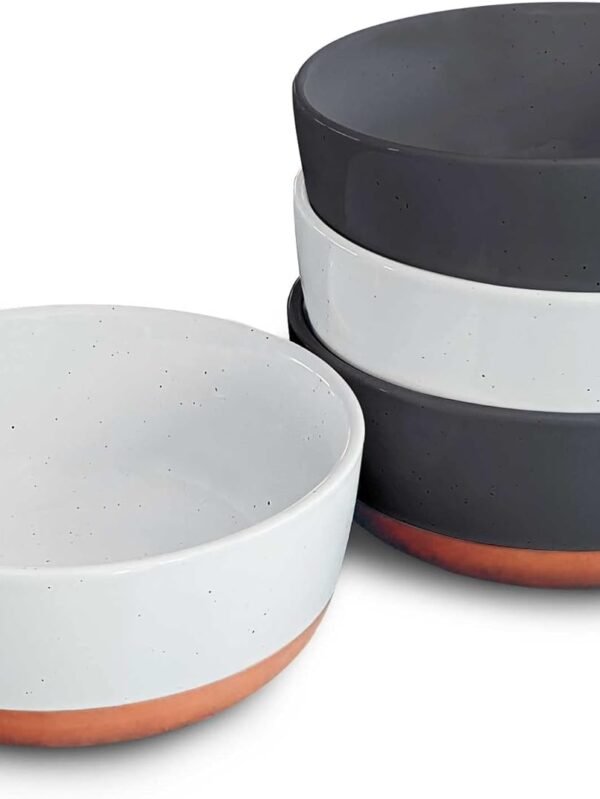 Ceramic Flat Bowls Set of 4-25 - For Soup, Salad, Rice, Cereal, Breakfast, Dinner, Serving, Oatmeal, etc - Microwave, Dishwasher and Oven Safe Bowl for Eating and Kitchen- Vanilla & Charcoal