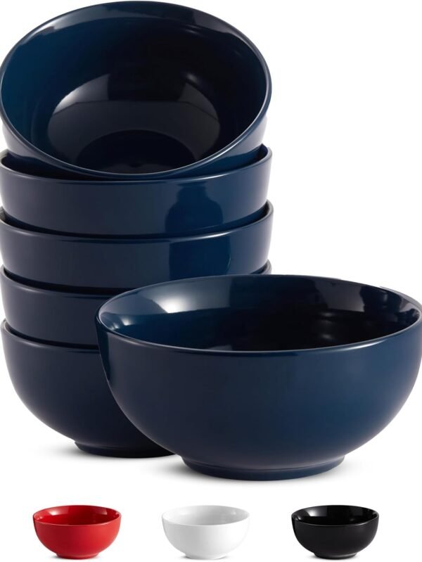 Cereal Bowl, Bowl Set, Ceramic Bowls, Set of 6, Soup Bowl, White Bowl, Microwave, Dishwasher and Freezer Safe, Chip Resistant, for Pasta, Salad, Oatmeal, Deep Interior, 24 (Navy, 6 Inch)