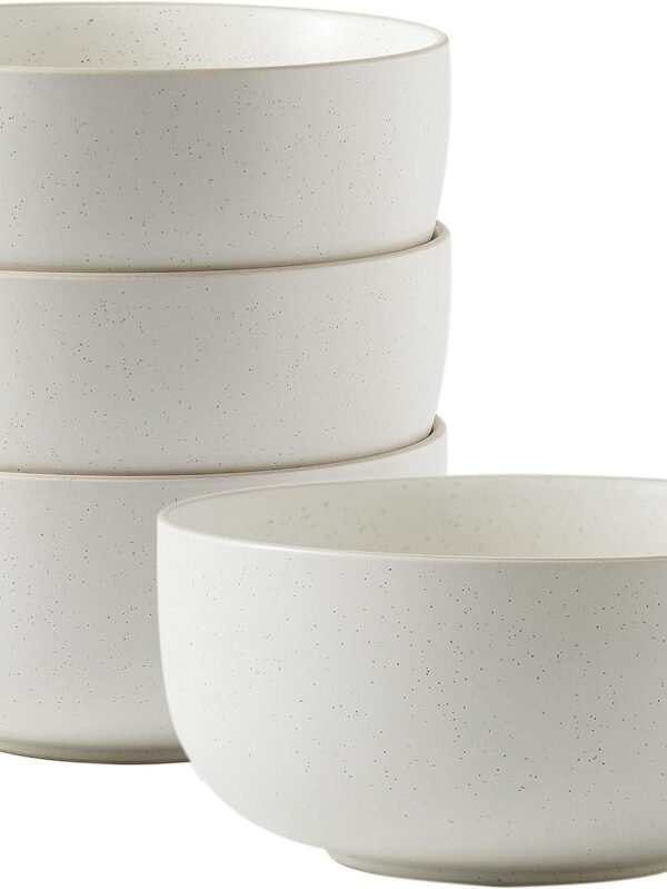 Ceramic Bowls for Kitchen, 36 Ounce, Large Capacity Cereal Bowls Set of 4, For Soup, Oatmeal, Breakfast, Microwave and Dishwasher Safe, Glazed Matte Off White…