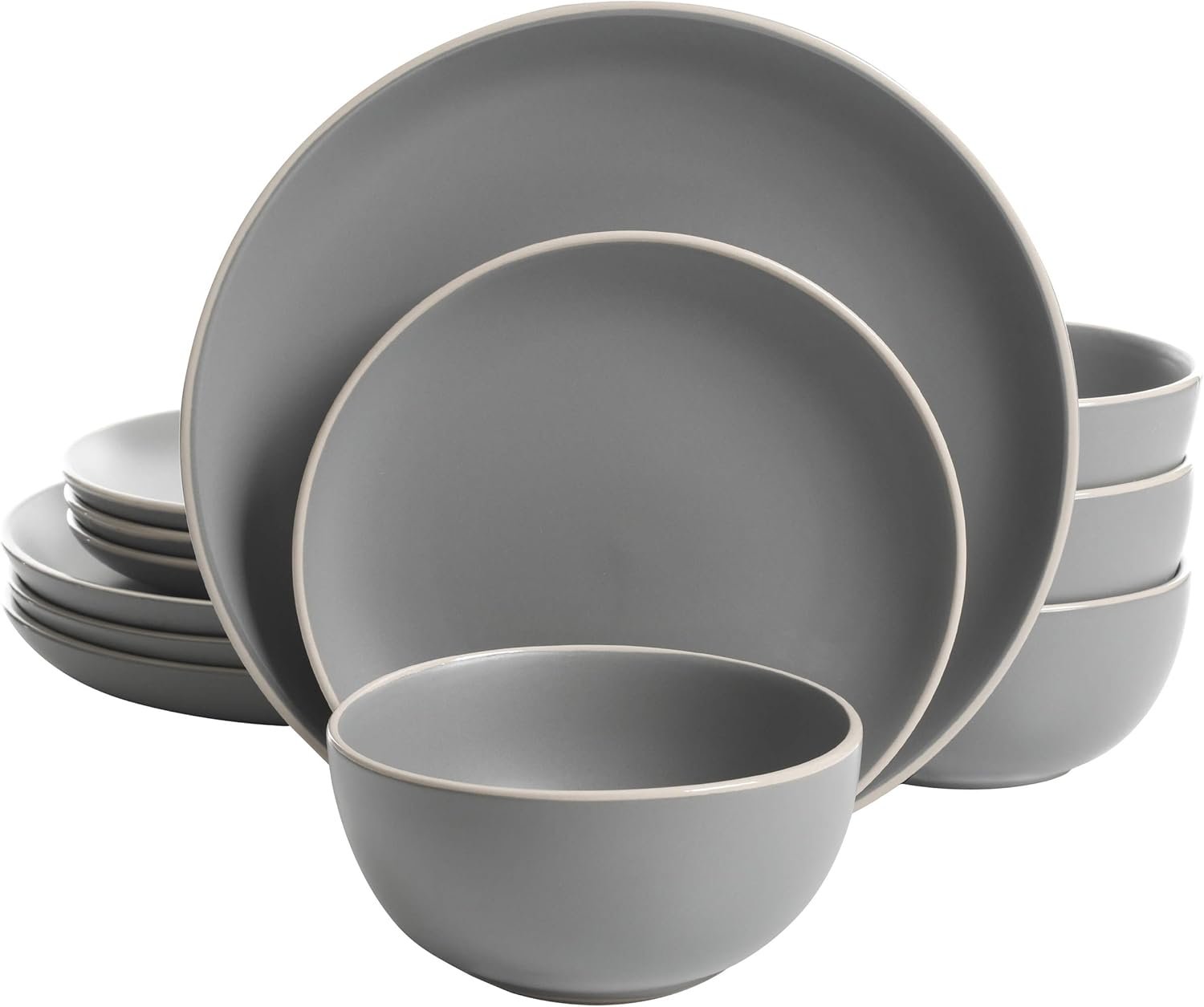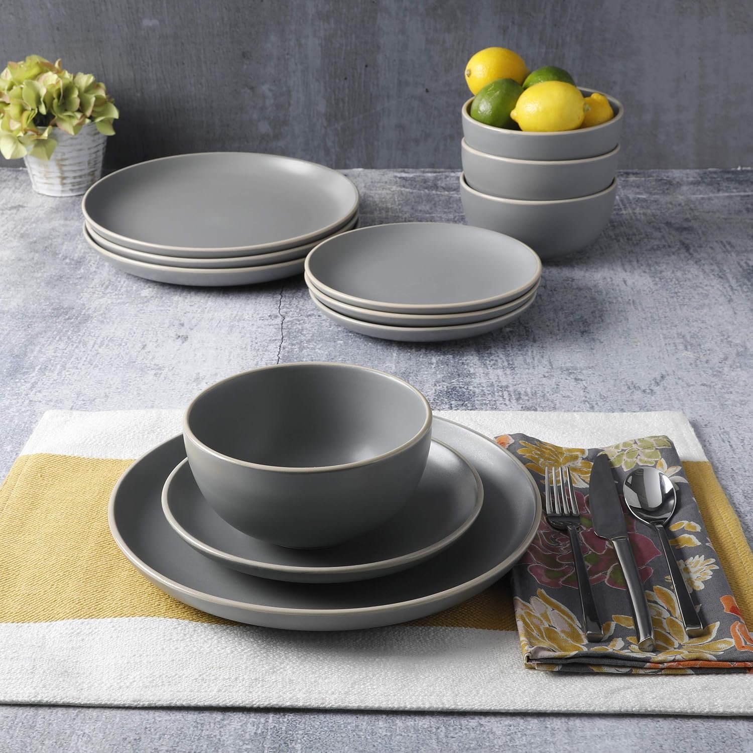 12-Piece Dinnerware Set Service for 4, Grey Matte –