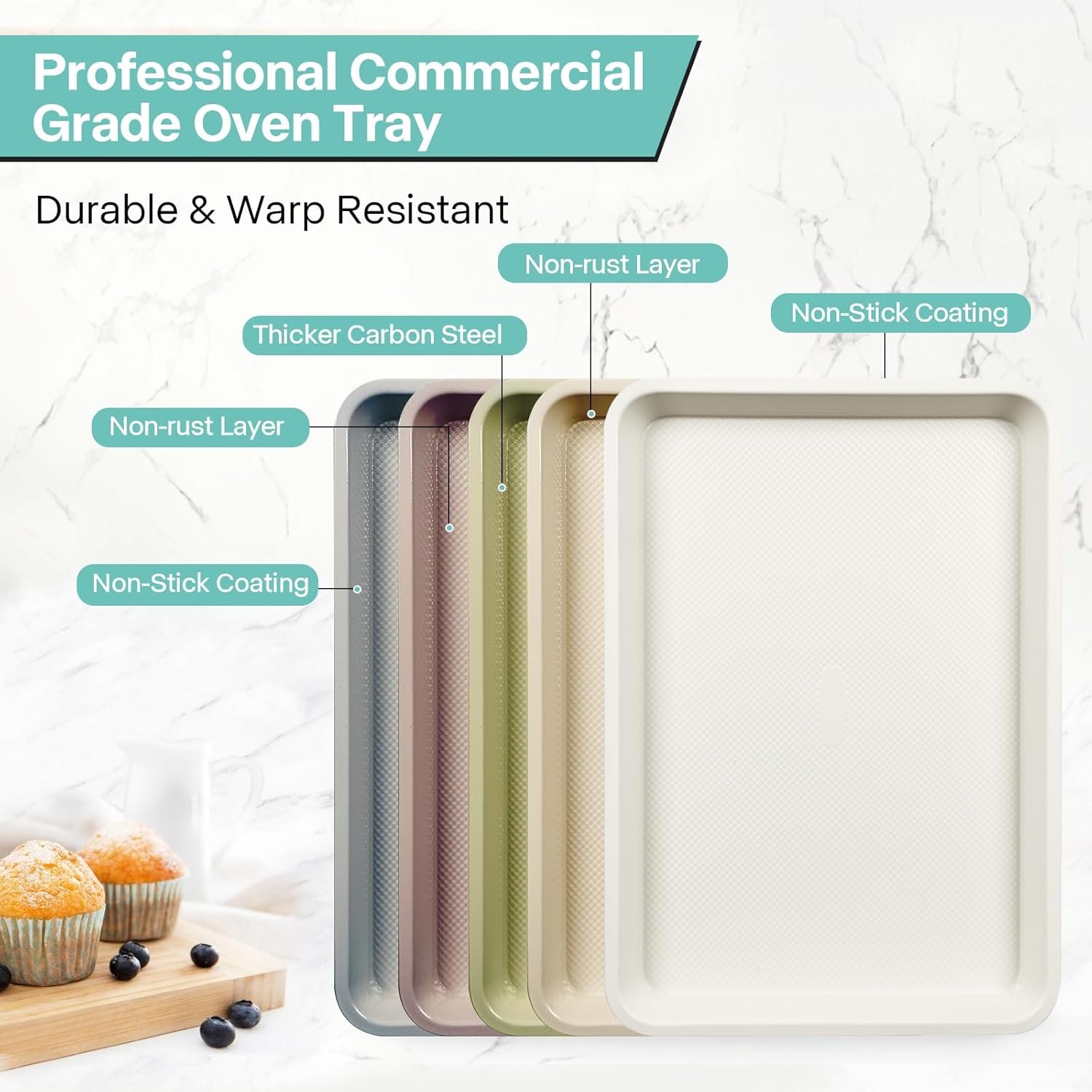 - Ceramic Coating Ensure Safe Baking: Featured -Free, nonstick, warp-resistant, ensures that food releases effortlessly – perfect for healthy home baking.