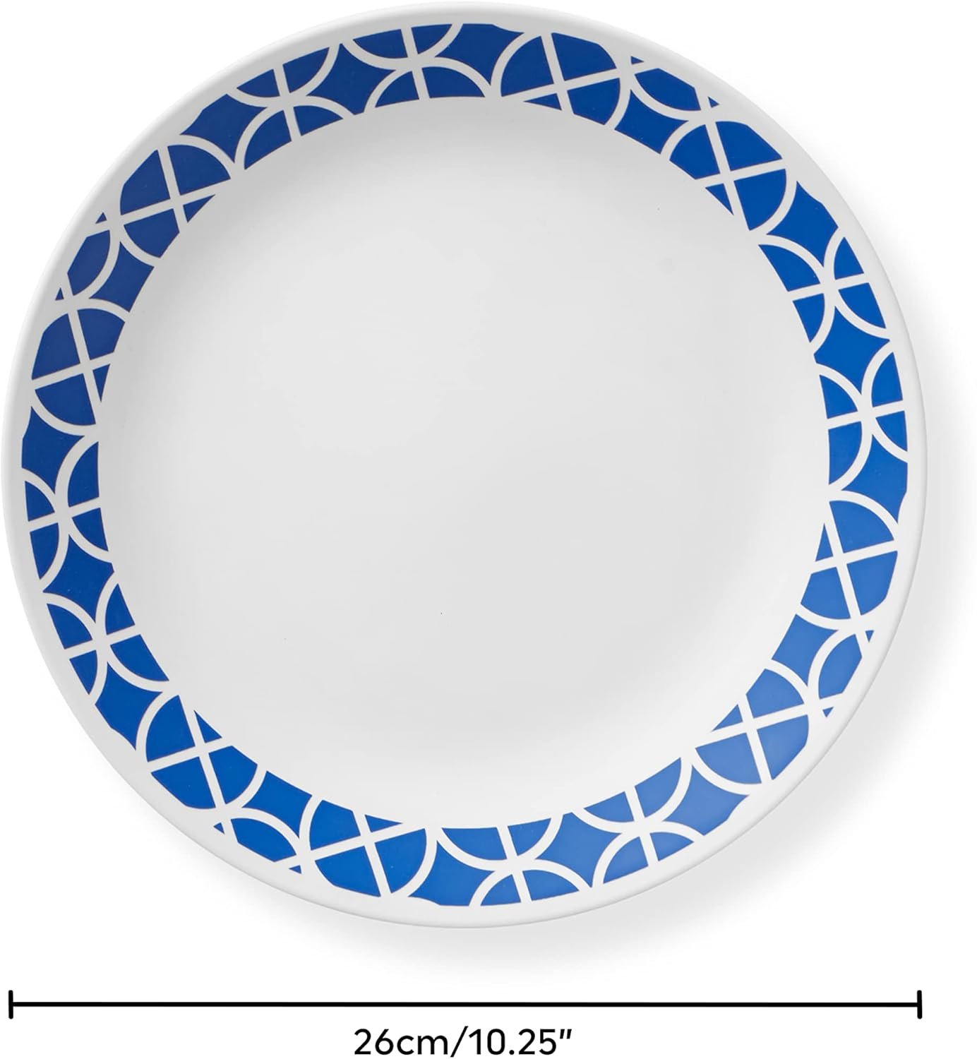 4-Pieces 10.25″ Glass Dinner Plates, Chip & Crack Resistant Glass Dinnerware Set Plates, Cobalt Circles
