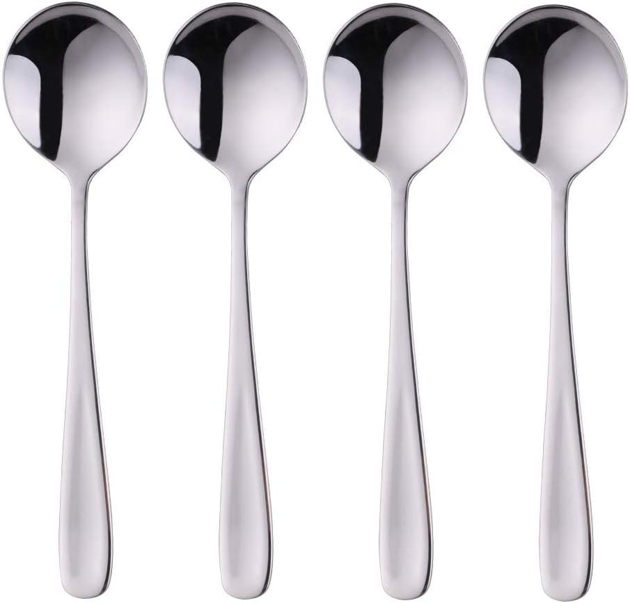 7-Inch Soup Spoons, Bouillon Spoon,18/10 Stainless Steel Finished Table Dinner Spoons Set of 4 (Silver)
