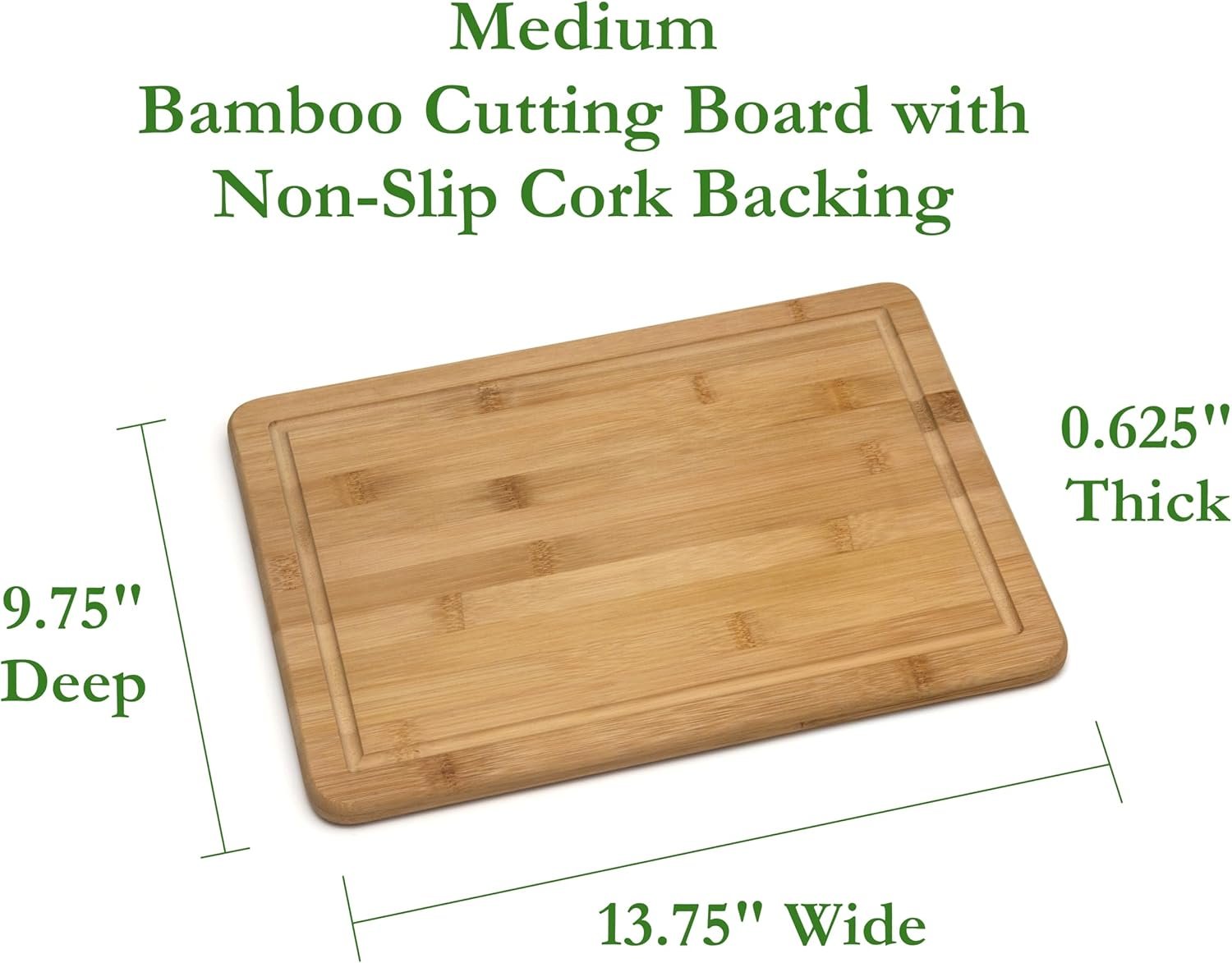 - Made from durable bamboo wood with a unique cork backing that prevents slippage during use