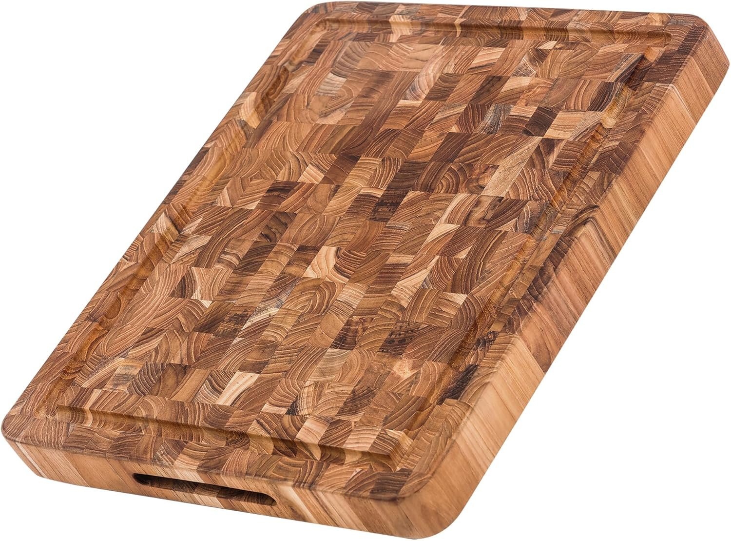- Made of Real Teak Wood: Teak is a durable tropical wood with superior moisture endurance. With no plastic components, coatings, or finishes, butcher blocks are naturally food-safe. Teak’s unmatched beauty and aesthetics make it the perfect charcuterie board over a classic elegant end-grain pattern or for chopping big cuts of meat, grilling, and preparations that require heavy-duty work.