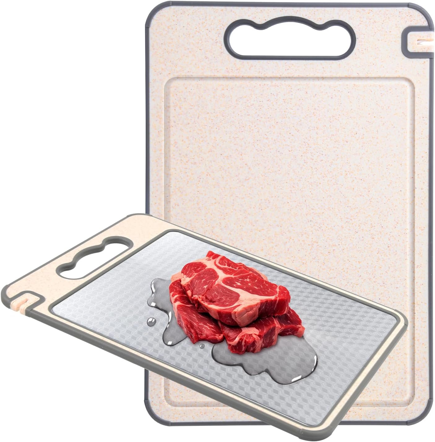 Cutting Board Stainless Steel & Titanium, 2-in-1 Double-Sided, Non-Slip, Wheat Straw PP, 14”×9.5”, Easy to Clean