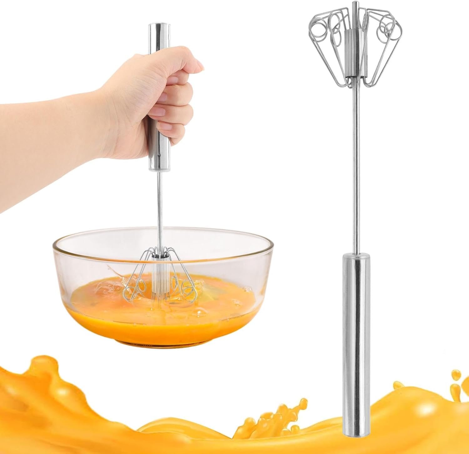 - 【SEMI-AUTOMATIC WHISK】The semi-automatic egg beater adopts the spring design. You just need to push down the handle, and the blending whisk will stir effortlessly and evenly the egg liquid. Its semi-automatic push down and rellease up function allows for complete control ,saving you time and effort in the kitchen.