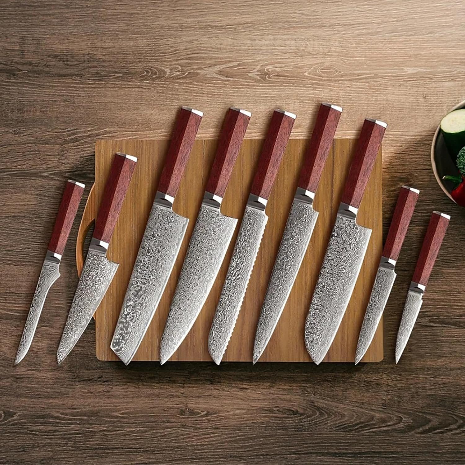 Kitchen Utensils Set Steel Knife 9 Piece Kitchen Knife Set, Steak Knife Chef Knife Kitchen Accessories, Core 67 Layers Blade Solid Rosewood, Durable, Easy To Clean