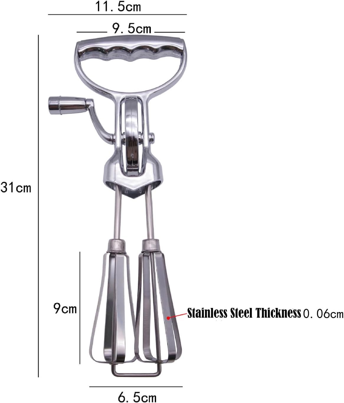 - Rotary whisk blender: metal whisks for cooking is lightweight, holding the whisk can enjoy the feeling of stirring. hand crank mixer is easy to use without hand mixer manual.